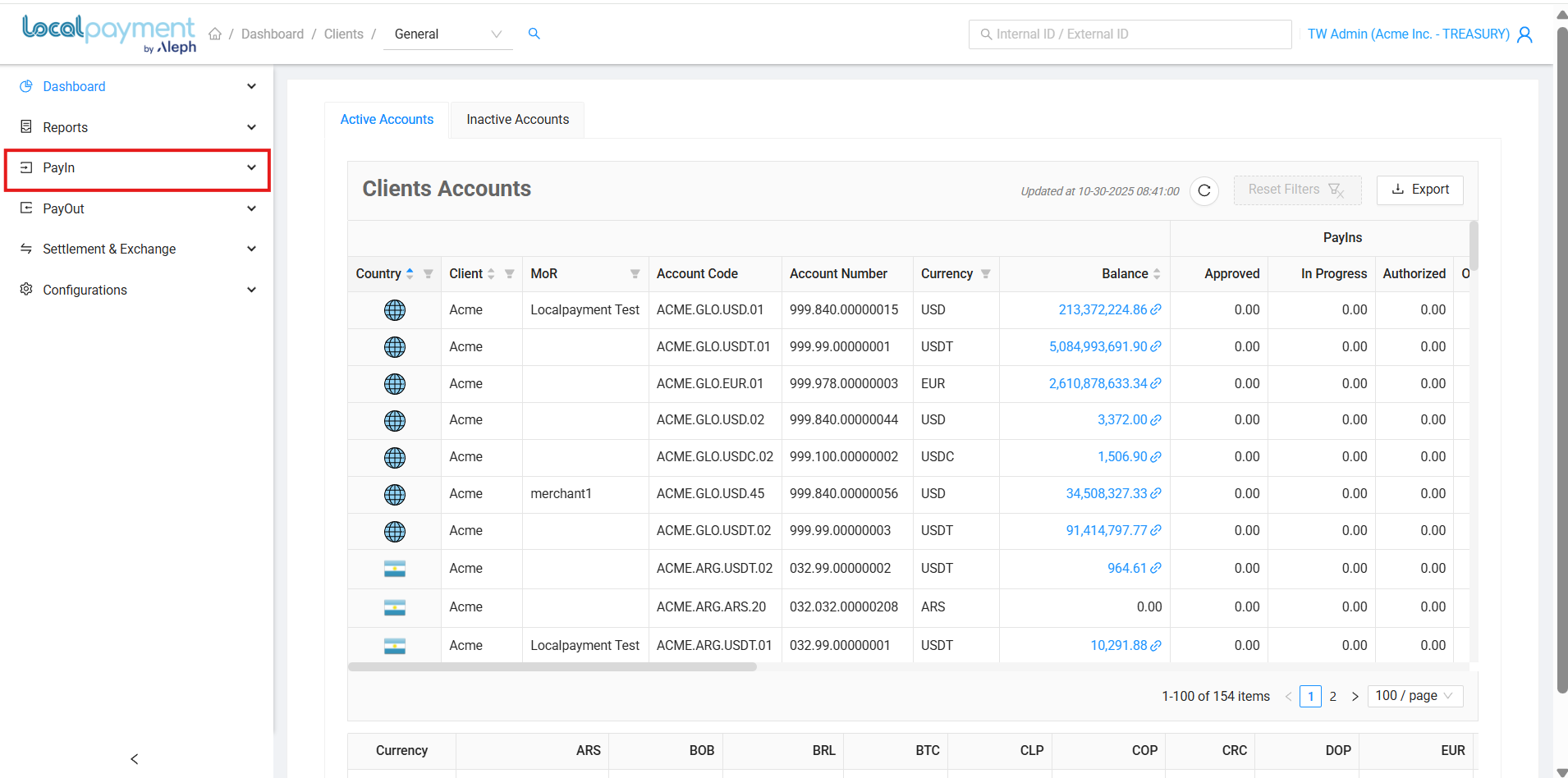 - Navigate to the PayIn module from the side menu.