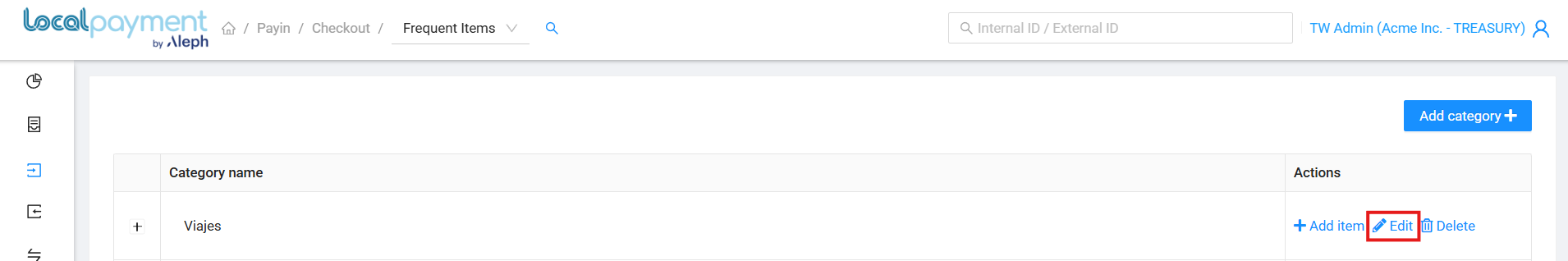 - Click the Add category button in the Frequent Items section.