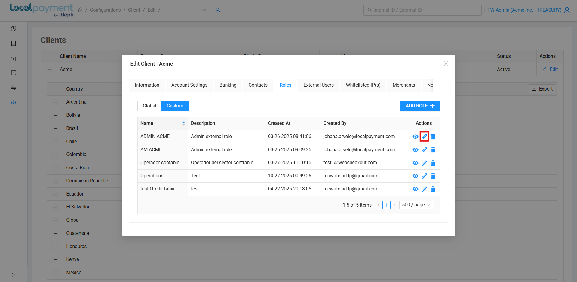 Define and manage custom user roles within the Localpayment Dashboard. This guide shows you how to create, edit, and delete roles, granting granular control over permissions to securely manage payment operations and enforce security policies.