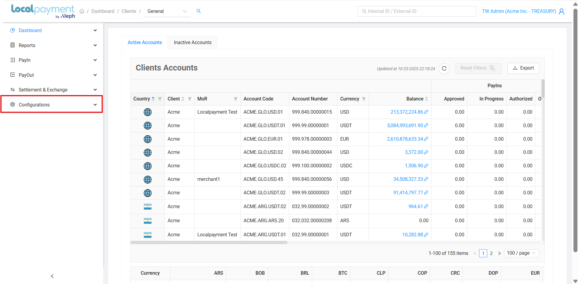- Configurations: Provides access to general platform settings, merchant profiles, and other global configurations.