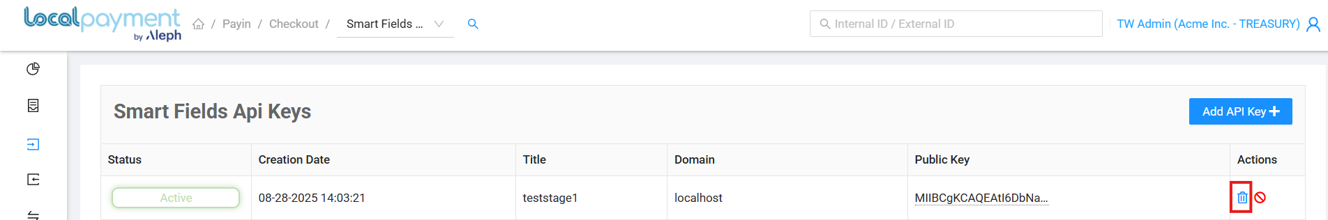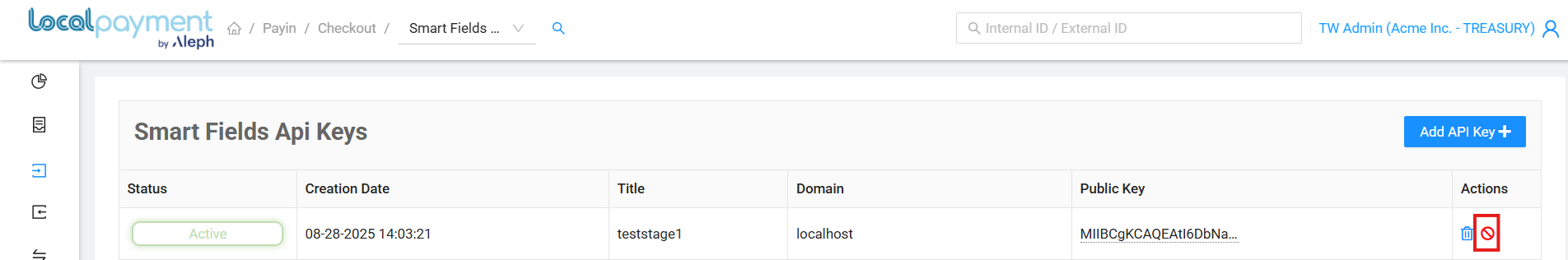 Step-by-step guide to generating and managing your Smart Fields API key in the Localpayment dashboard.