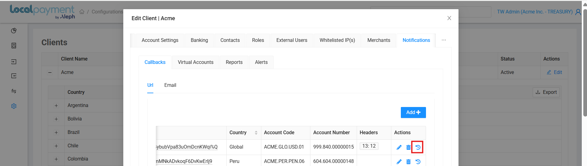 Side Menu → Configurations → Client → Edit → Notifications → Callbacks