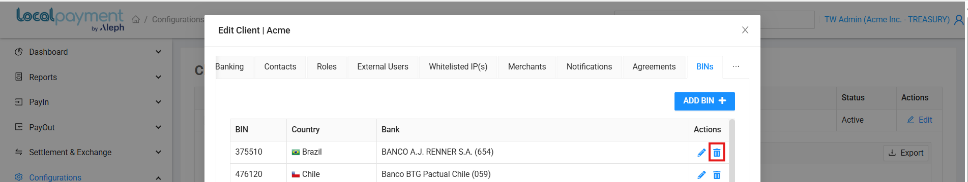 - Confirm the deletion when prompted. The BIN will be immediately removed from the whitelist.