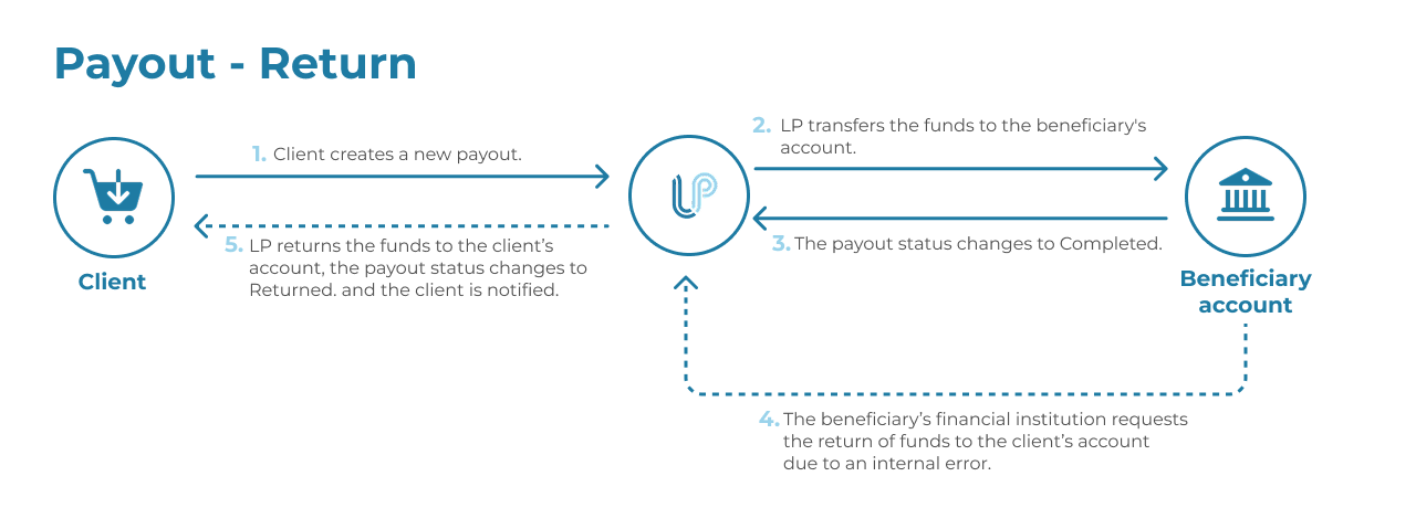 - Return Processing: LocalPayment returns the funds to the client's account.